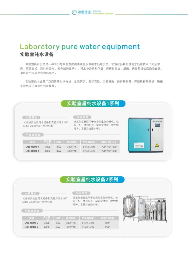 湖南龍新凈水科技有限公司成立于2004年,致力成為更受信賴的水處理整體解決方案智造商,是集研發(fā)、智造、施工、運(yùn)維、EPC為一體的國(guó)家高新技術(shù)企業(yè)。擁有研發(fā)基地近1000㎡,生產(chǎn)基地2000㎡,已獲得200多項(xiàng)國(guó)家發(fā)明及實(shí)用新型專利證書(shū),公司主營(yíng)業(yè)務(wù)涵蓋高端實(shí)驗(yàn)室醫(yī)療用水設(shè)備、醫(yī)院集中分質(zhì)供水系統(tǒng)(醫(yī)院智慧水系統(tǒng))、GMP純化水系統(tǒng)、高端凈飲水設(shè)備等領(lǐng)域。